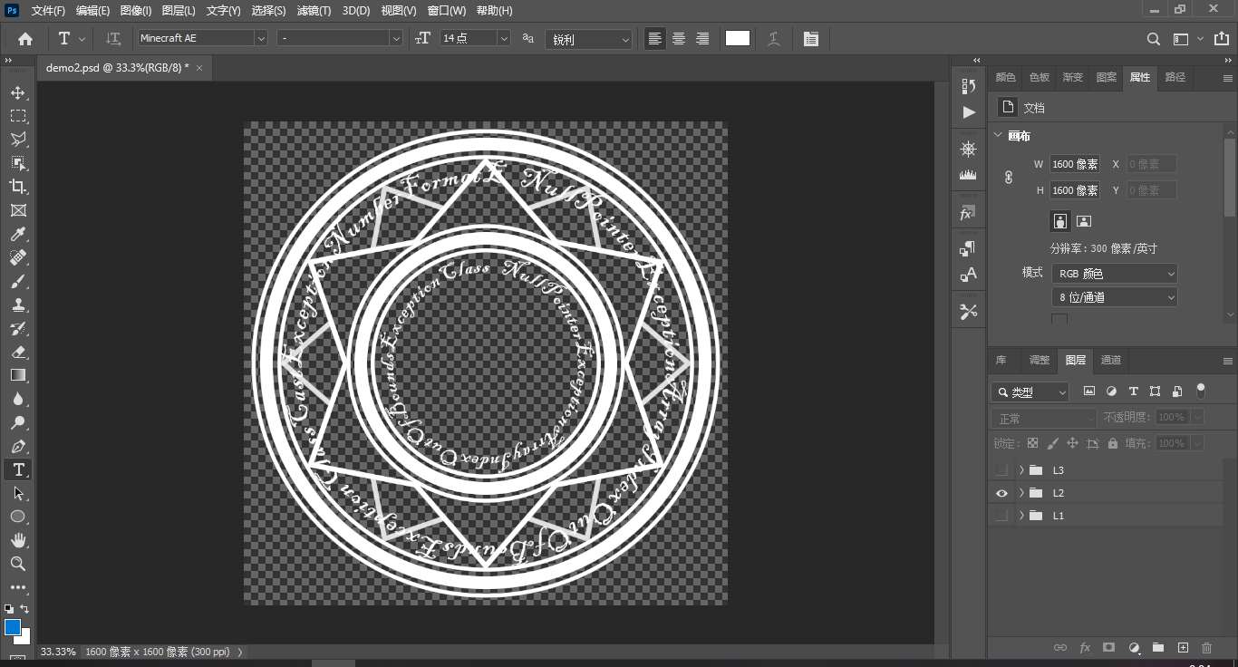 将绘制好的材质分层导出,因为法阵是需要旋转的,我们希望每一层有不同的旋转速度。需要多少层并无限制,这里演示只分了两层